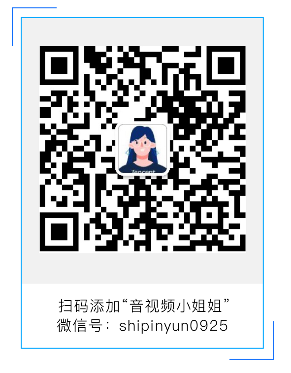 更多腾讯云音视频问题咨询,请扫码添加音视频小姐姐微信,我们将安排产研同学专门跟进您的需求。