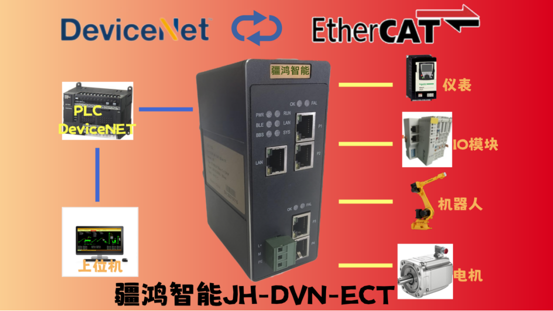 通过将DEVICENET转EtherCAT网关引入水处理工厂的自动化系统,实现了DEVICENET从站与欧姆龙PLC以及EtherCAT网络下的仪表、电机、机器人等设备的无缝连接。网关在其中起到了桥梁的作用,它能够将DEVICENET协议的数据转换为EtherCAT协议的数据,反之亦然,使得不同协议的设备能够在同一个网络中进行数据交互和协同工作。