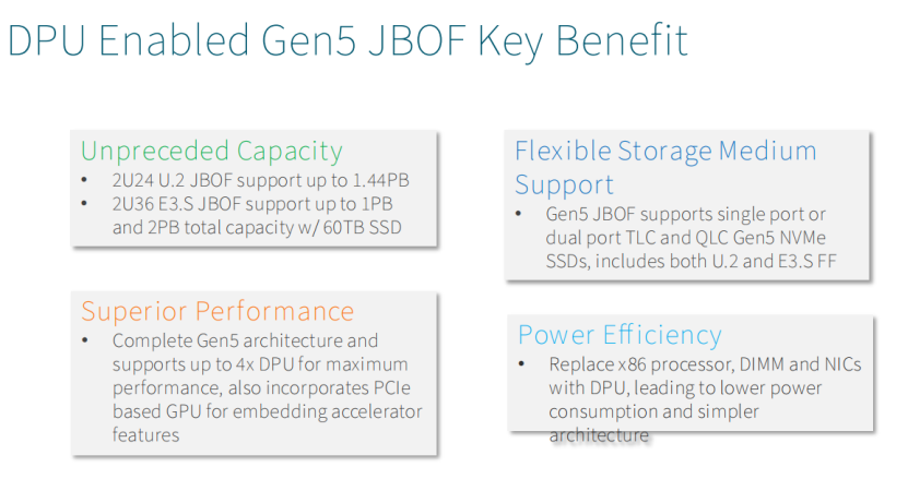 在每个JBOF里可以配置2个GPU和1个DPU。