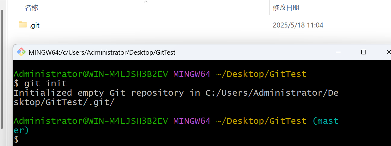 这个命令的意思就是:“Git,请你现在开始初始化(initialize)我当前所在的这个文件夹,让它变成一个可以进行版本控制的 Git 仓库吧!”