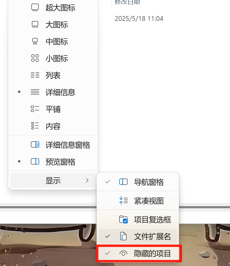 drwxrwxr-x 7 zz zz 4096 May 5 15:49 .git/ # Git 仓库目录,它是隐藏的Windows记得打开隐藏文件显示: