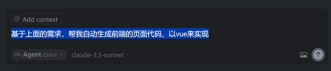 AI对话框,选择Agent模式,模型选择:claude-3.5-sonnet