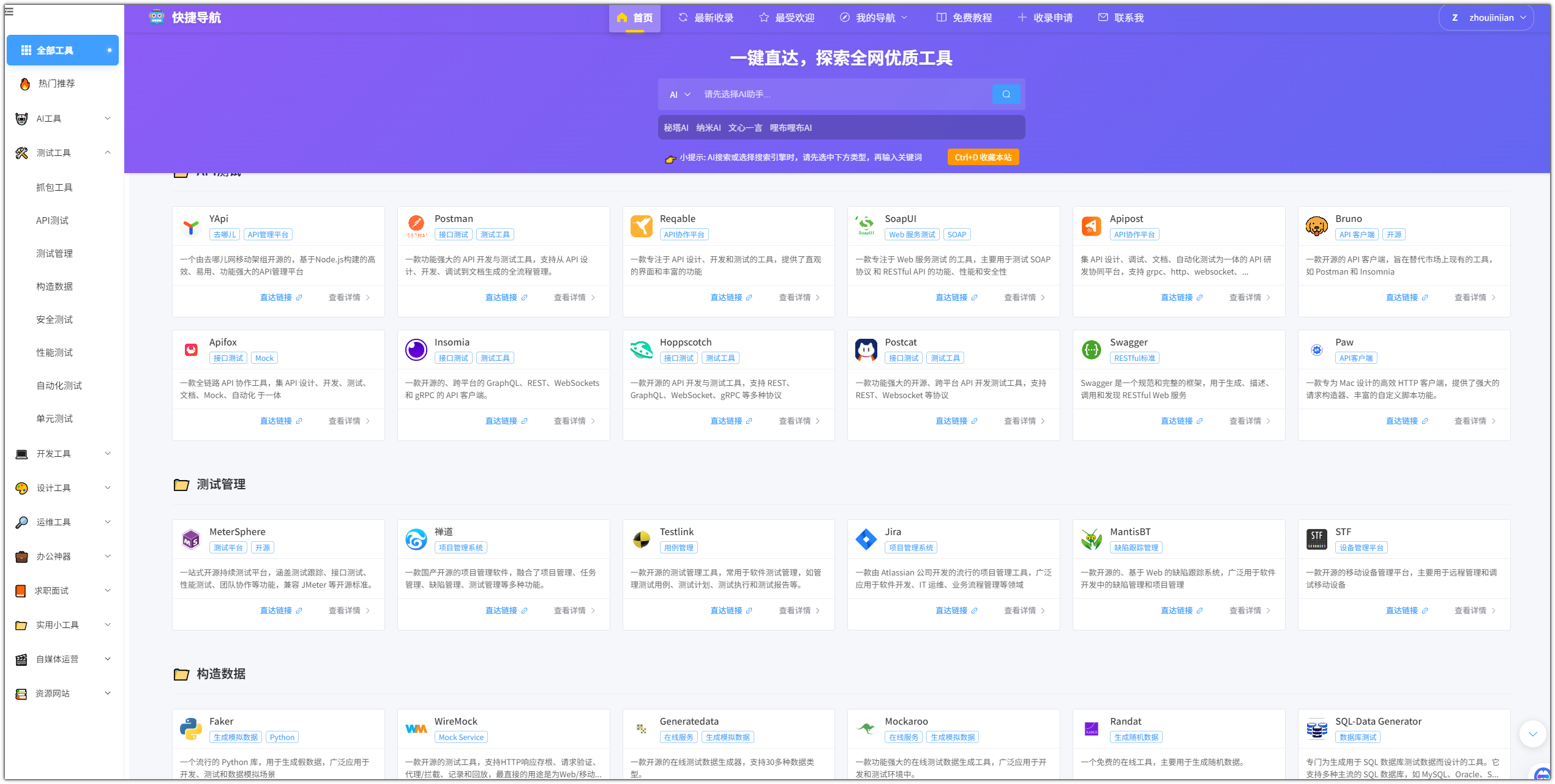 网站内容定位: 汇聚了 AI、大数据、测试、开发、设计、运维、职场办公、自媒体创作等领域的海量优质工具、资源、教程。无论是 AI人工智能助手、测试开发工具,职场办公提效,都能满足您的需求。 致力于打造国内最优质、实用的工具导航平台,满足用户在不同场景下的各类需求。无需繁琐搜索,告别无效跳转,让您以最快速度获取所需。