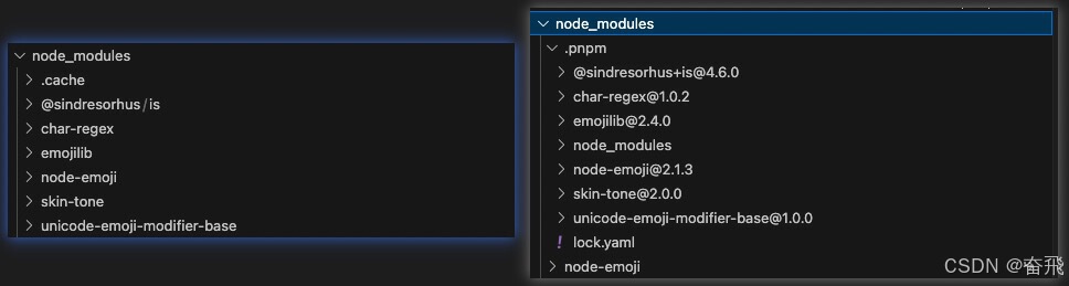 左侧:npm;右侧:pnpm