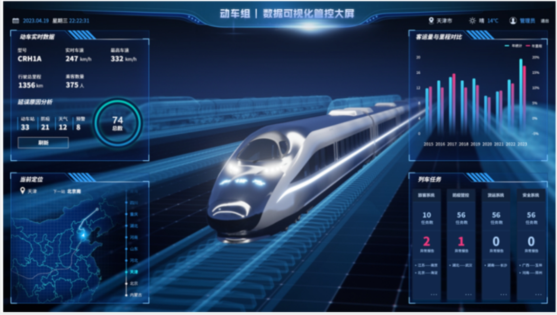 - 动车车辆监控:数字孪生技术能模拟动车的运行状态,实时监控车辆的各项参数(如加速度、减速度、转向角度等),及时发现异常并采取措施,确保安全运行。
