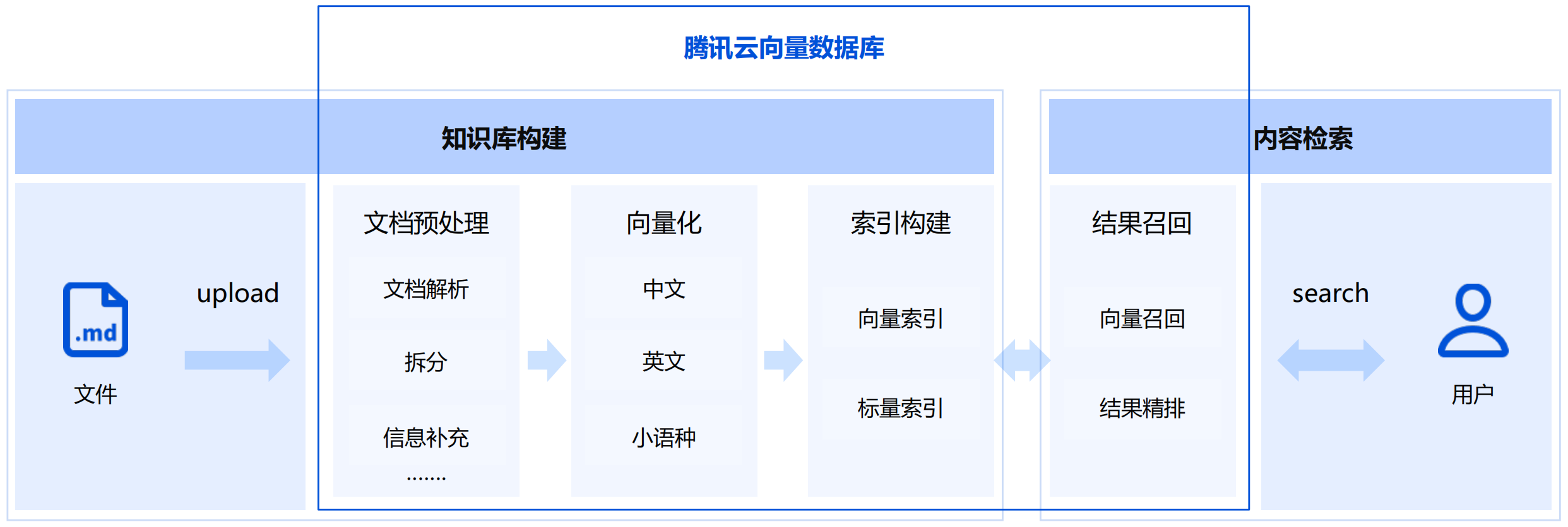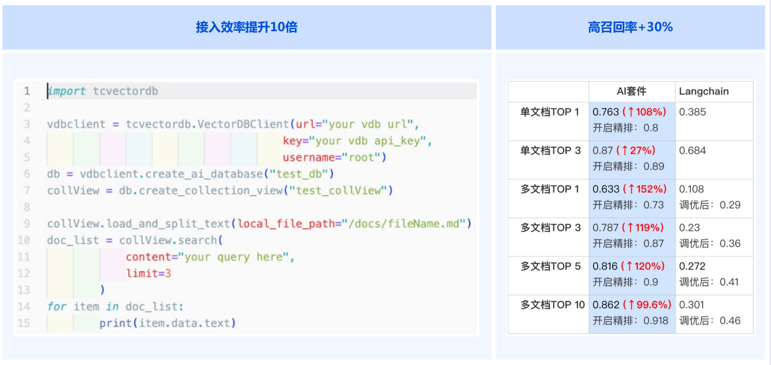 AI 套件是腾讯云向量数据库(Tencent Cloud VectorDB)提供的一站式文档检索解决方案,包含自动化文档解析、信息补充、向量化、内容检索等能力,并拥有丰富的可配置项,助力显著提升文档检索召回效果。用户仅需上传原始文档,数分钟内即可快速构建专属知识库,大幅提高RAG应用的开发效率。