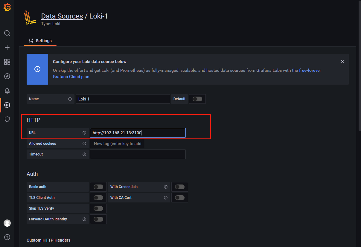 填写 loki 地址: