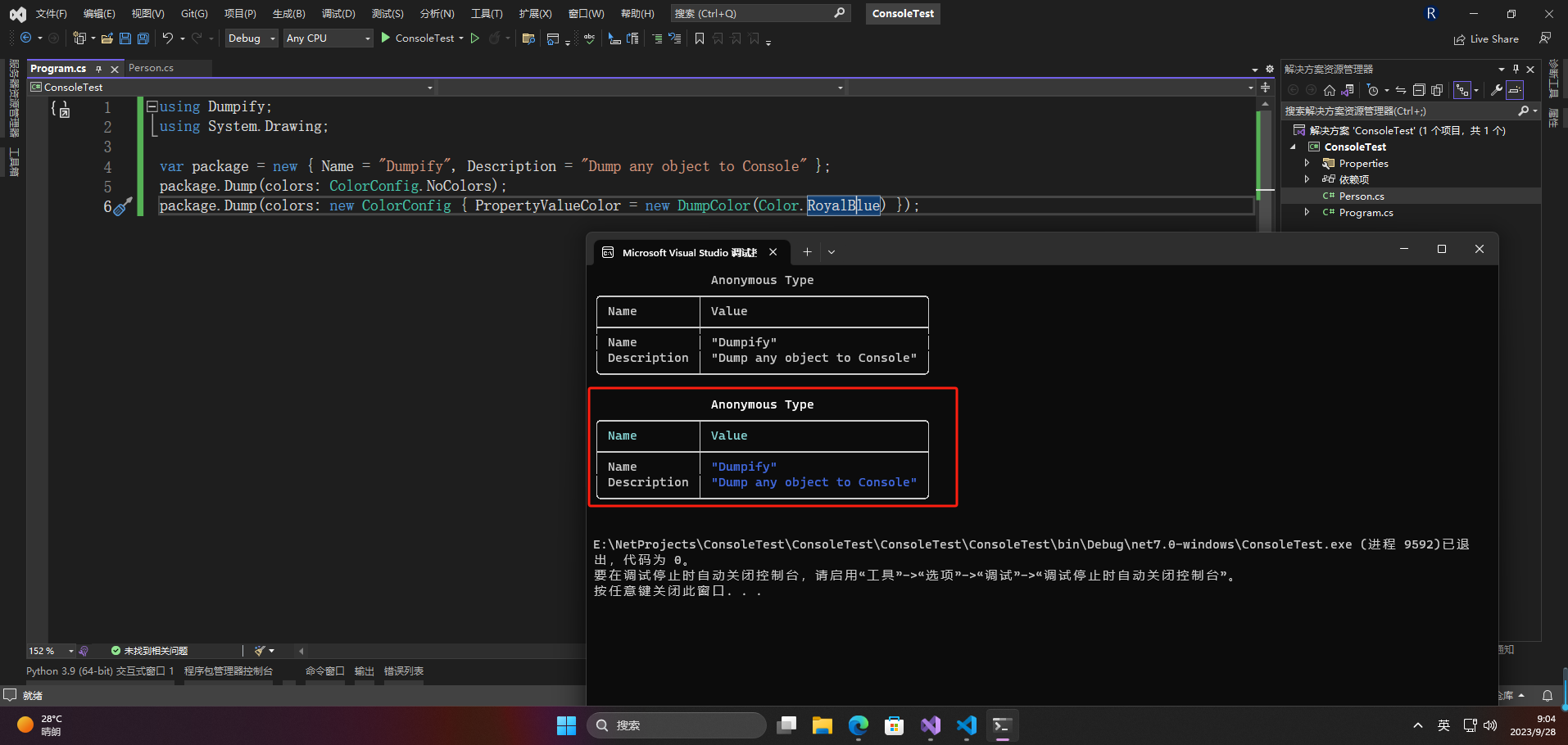 package.Dump(colors: new ColorConfig { PropertyValueColor = new DumpColor(Color.RoyalBlue) });