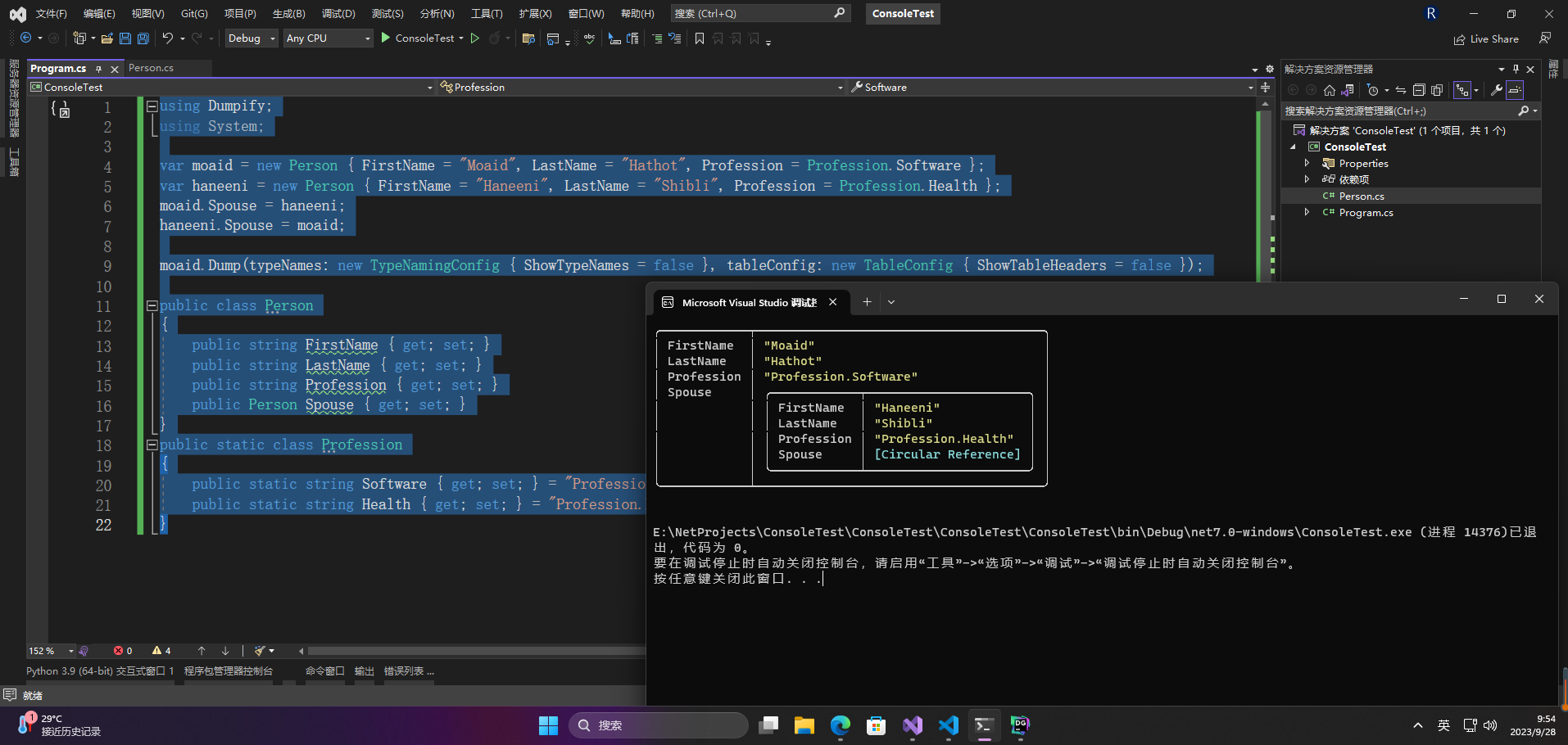 var haneeni = new Person { FirstName = "Haneeni", LastName = "Shibli", Profession = Profession.Health };