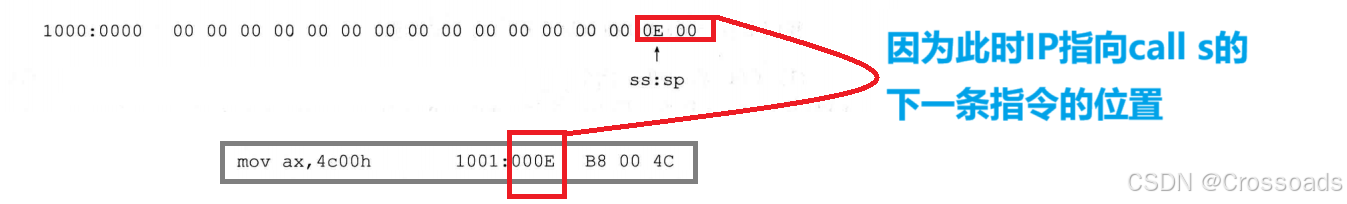 (5)CPU回到 cs:000EH处(即call指令后面的指令处)继续执行。