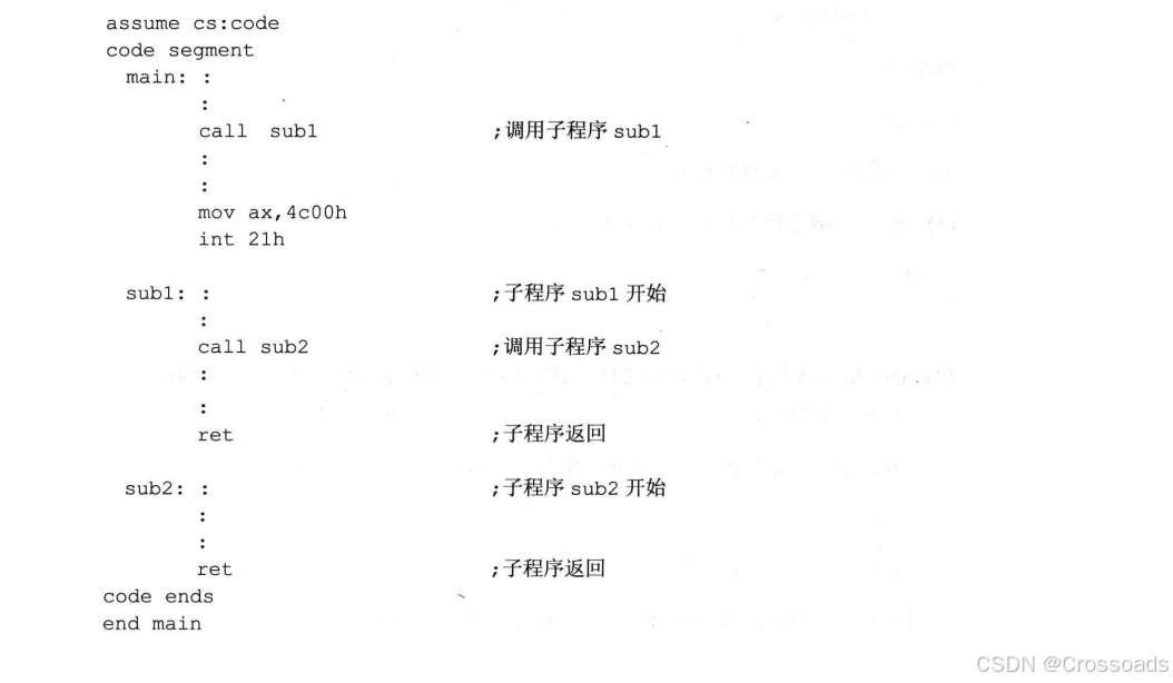 从上面的讨论中我们发现,可以写一个具有一定功能的程序段,我们称其为子程序,在需要的时候,用call指令转去执行。