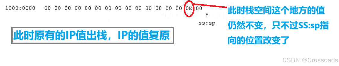 (3)CPU将ret指令的机器码读入,IP指向了ret 指令后的内存单元,然后CPU 执行 ret 指令 ,从栈中弹出一个值(即 call 先前压入的 mov bx,ax