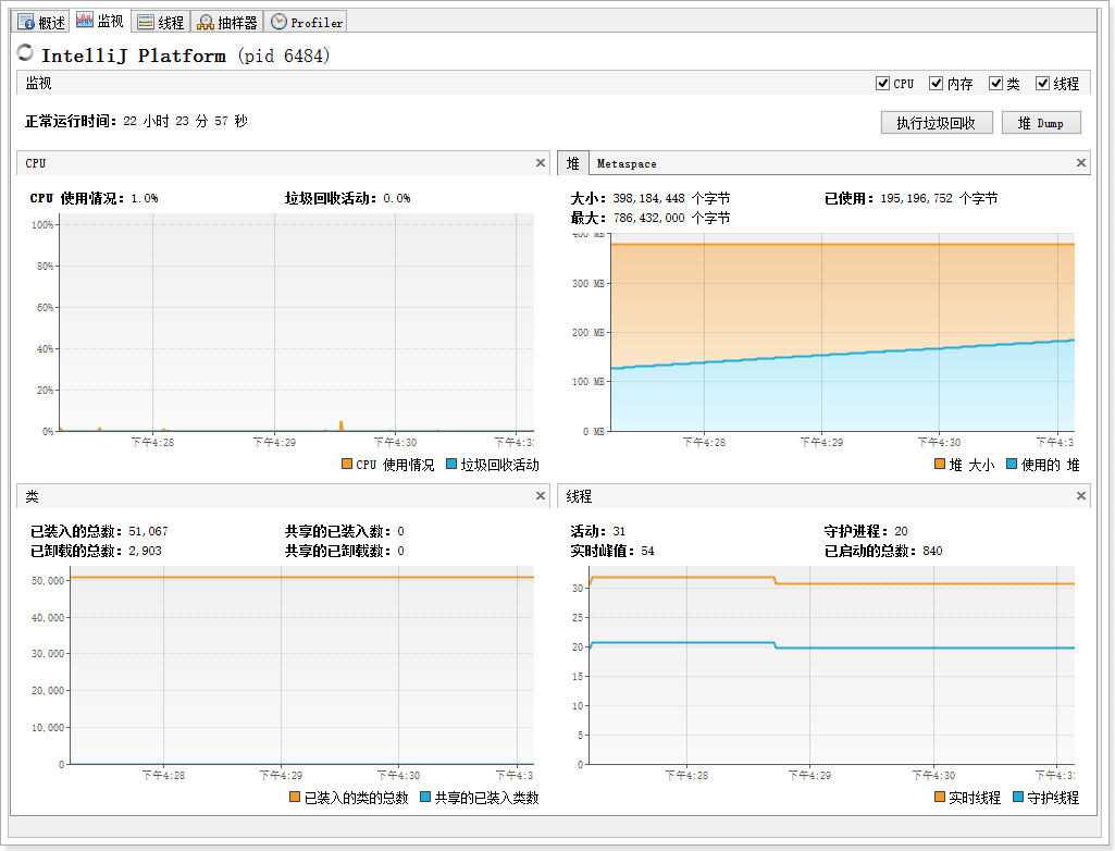 连接成功。使用方法和前面就一样了,就可以和监控本地jvm进程一样,监控远程的tomcat进程。