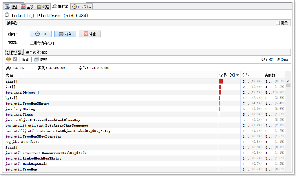 抽样器可以对CPU、内存在一段时间内进行抽样,以供分析。