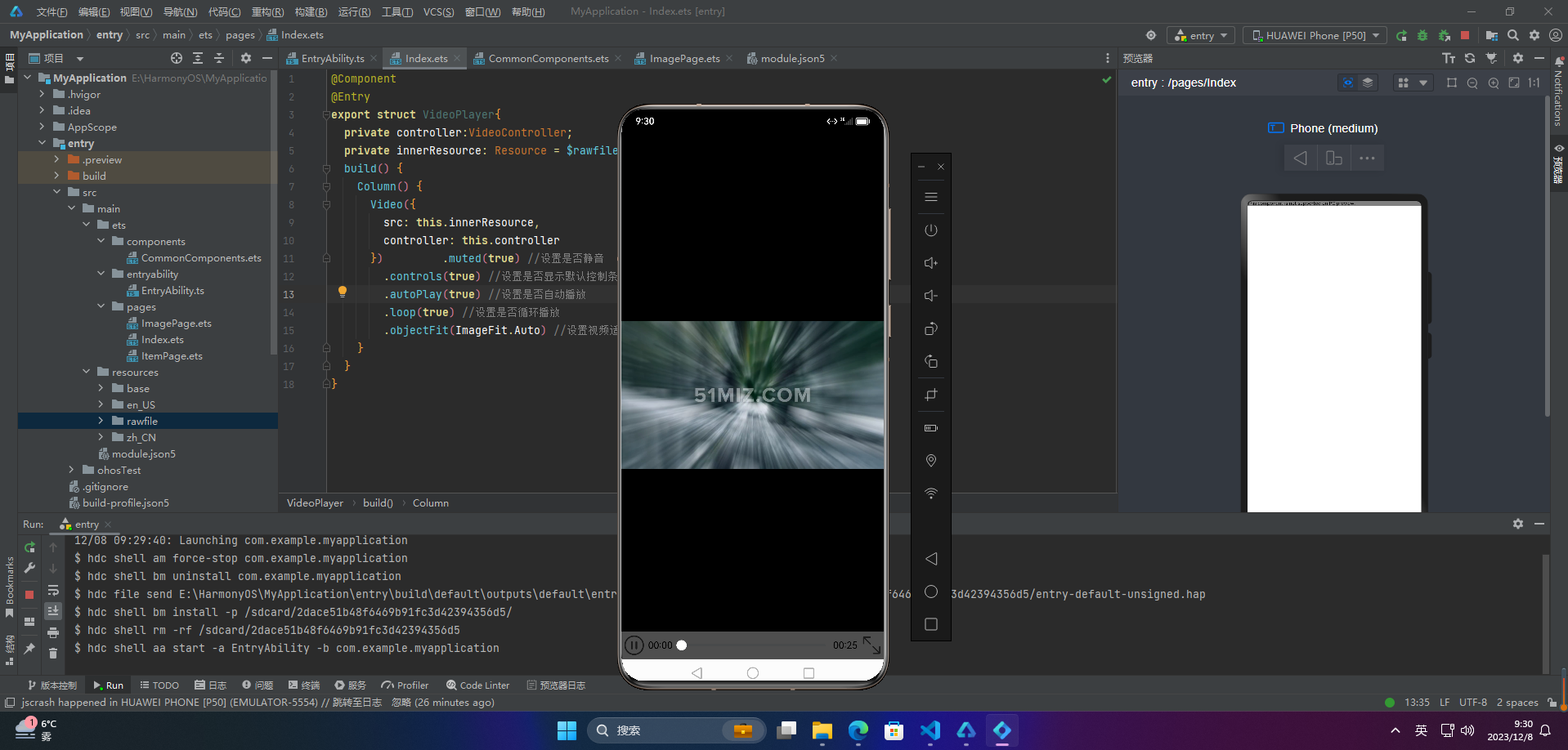 其中,src指定视频播放源的路径,加载方式请参考加载视频资源,currentProgressRate用于设置视频播放倍速,previewUri指定视频未播放时的预览图片路径,controller设置视频控制器,用于自定义控制视频。
