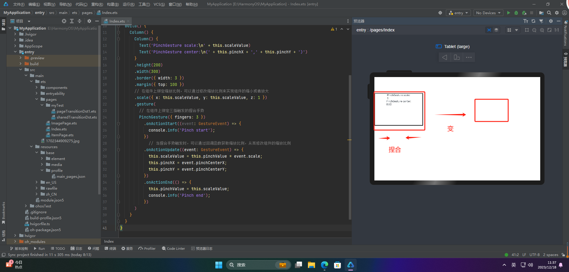 // 当捏合手势触发时,可以通过回调函数获取缩放比例,从而修改组件的缩放比例