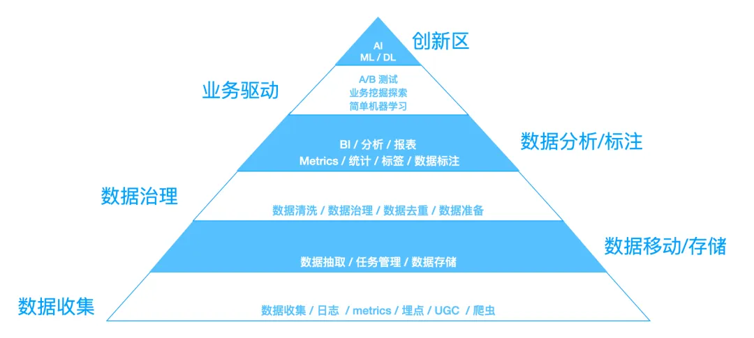 从上图可以看出,数据相关工作涵盖了数据收集、数据移动与存储、数据治理、数据分析与标注、业务驱动分析直至创新领域几个层级(这是个人理解的划分)。人才需求和工作时长逐步递增,而薪资水平则在高层更为丰厚,学历要求也相对较高。不过,别担心,学历不是唯一通行证,实践经验同样是通往成功的捷径。接下来,我们一起来看看各职位对应的职责范围