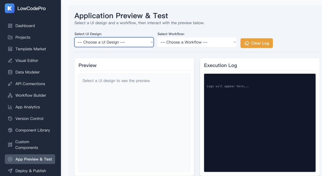 运行下网站看看效果,估计是用的国外大模型,生成的网站纯英文,页面有模有样,符合低代码平台的功能和设计。