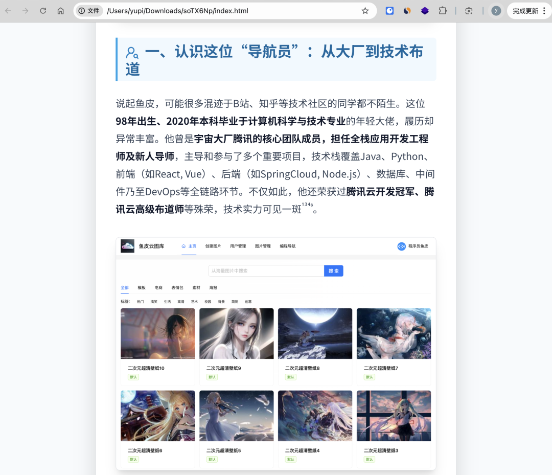 不得不说,AI 真的很喜欢生成网站啊。这也提醒我们,如果想让 AI 更准确地完成复杂任务,就一定要把任务描述清楚(比如生成 Markdown 格式的图文)。这也是一个技术活,大家可以看我 开源免费的 AI 知识库 来学习如何编写效果更好的提示词。