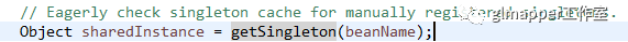 为手工注册的singleton检查单例缓存。,从这个注释可以看出,此处就是我们获取实例的地方,再往下看。