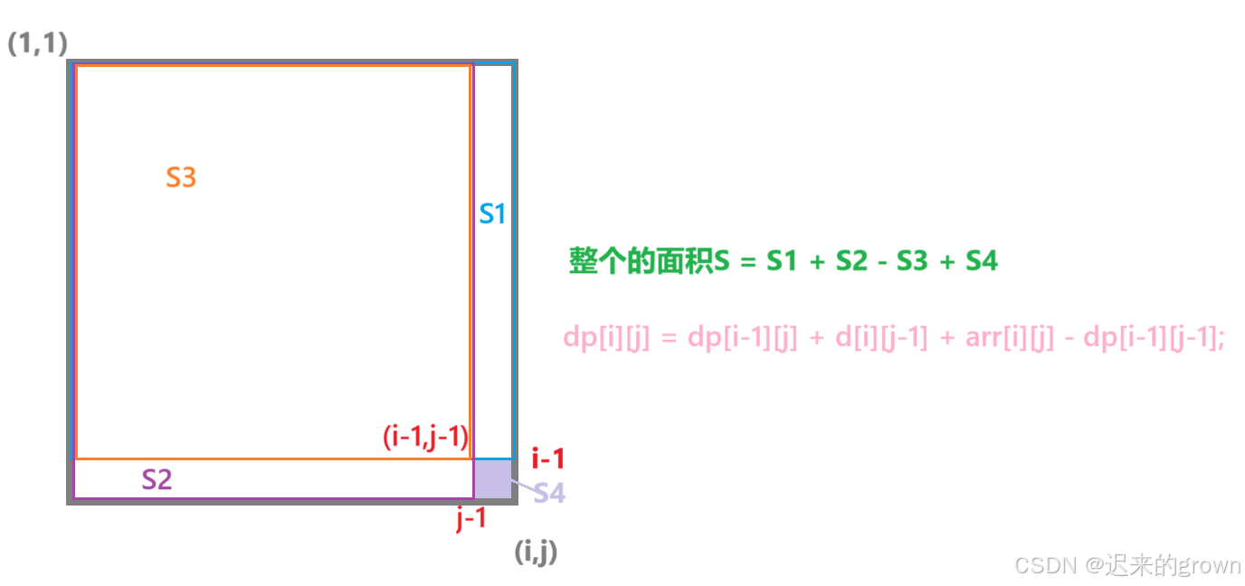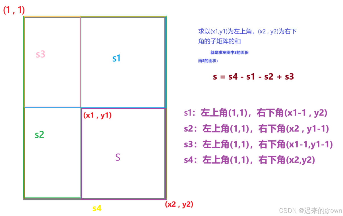也就是s = dp[x2][y2] - dp[x2][y1-1] - dp[x1-1][y2] + dp[x1-1][y1-1]