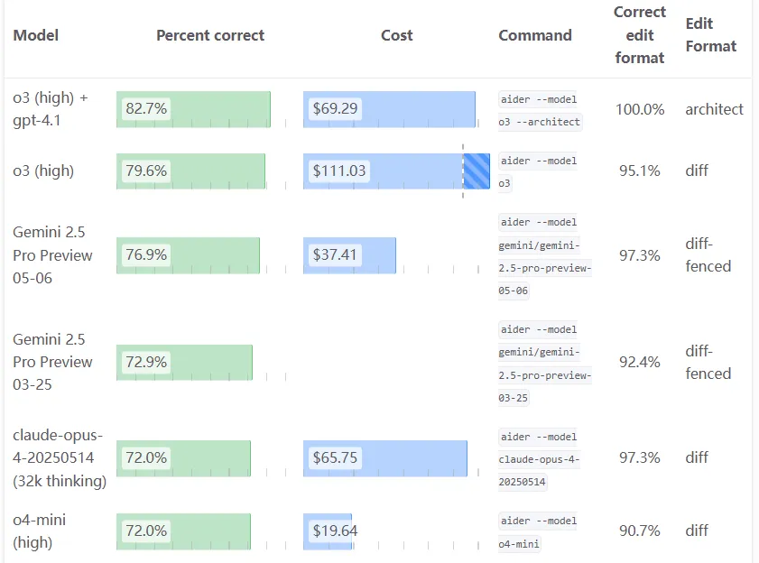 在保持 o3 四分之一以下的低价格的同时,在编码(Aider Polyglot)、推理能力(HLE)、科学(GPQA)等各项基准测试中超越 o3,实现更优性能!