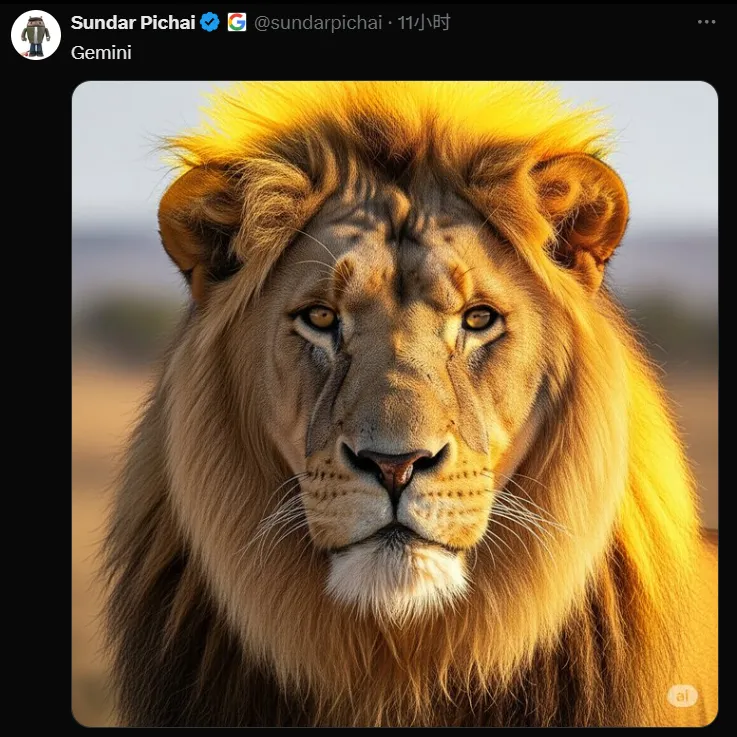 谷歌 CEO 劈柴哥也晒出了一张 AI 生成的狮子图,这究竟是为自家更新高调「站台」,还是在展示 Gemini 的作图实力?