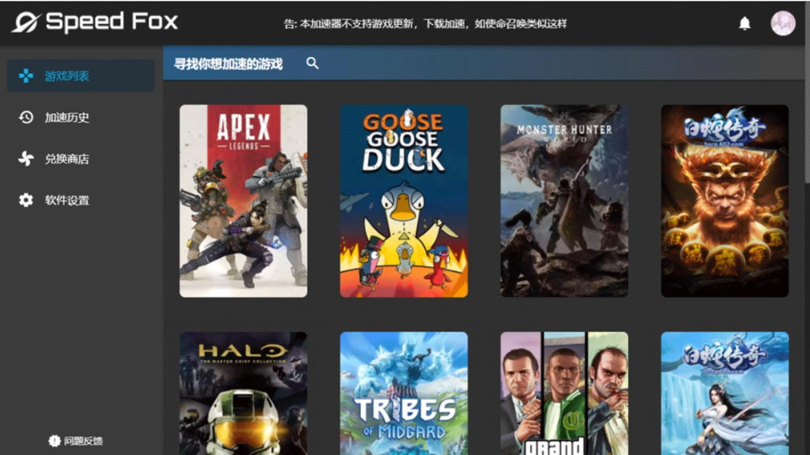 炽焰加速器拥有海量游戏库,覆盖全球网游,知名新游实时收录,让您与全世界玩家站在同一起点竞技。
