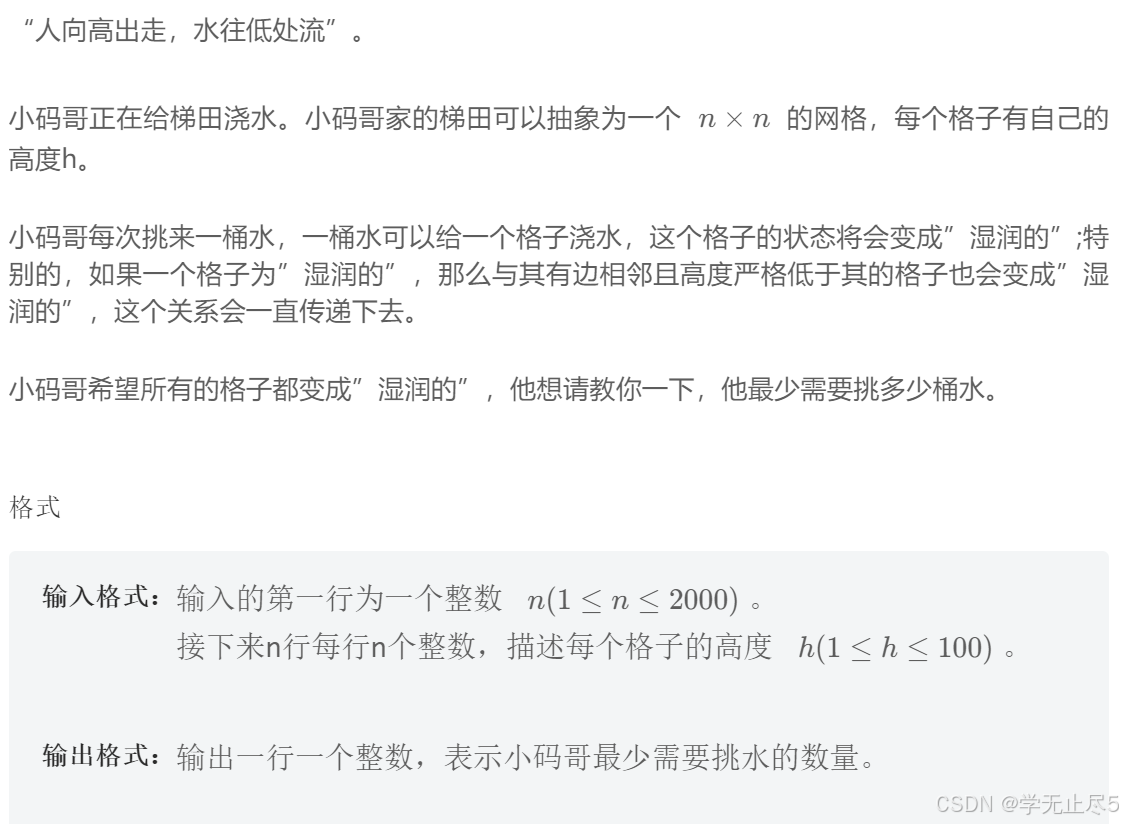 思路:比较当前格子的左,右,上,下。如果比左小,则count++,同理其他方向也一样。最终我们得到的是被影响才湿润的格子数量。所以最后用所有的格子数量减去count得到的才是最终结果。