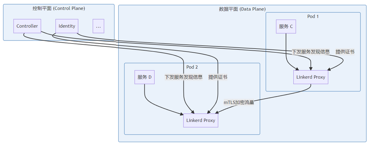 - 数据平面 (Data Plane): 由用 Rust 编写的超轻量级 linkerd-proxy 构成。Rust 语言带来的内存安全和高并发性能是其核心优势之一。