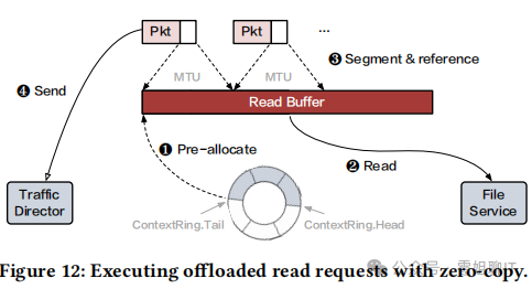 当流量导向器检测到读取请求时,会使用页面ID 查询缓存表,若缓存的 LSN 大于或等于请求的 LSN,则卸载该请求(OffloadPred 函数)。