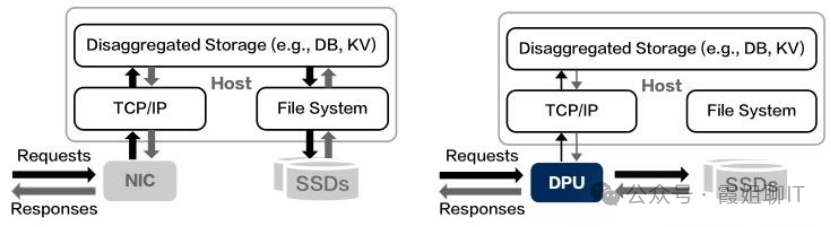 为降低延迟,当请求到达接口时,DPU 不会像如今的网卡那样将其转发至主机,而是直接处理请求并访问 SSD 上的数据。