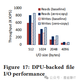 我们还评估了 DDS 存储路径在处理不同大小的主机发出的文件请求时的效率(图 17)。