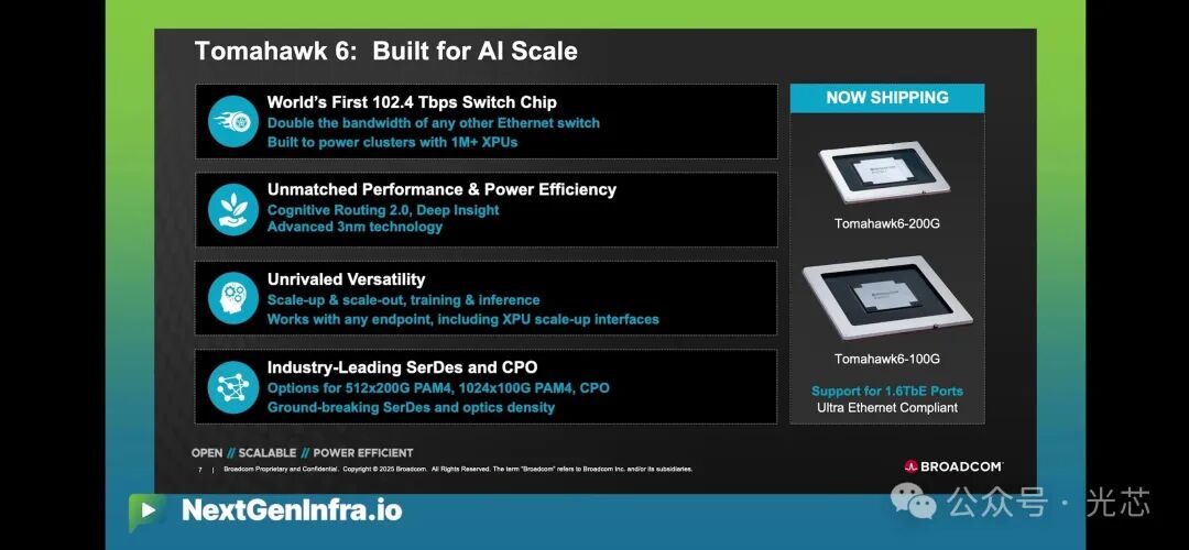 Tomahawk 6的创新不仅限于芯片本身,其通过博通领先的SerDes和光学生态系统实现全系统优化: