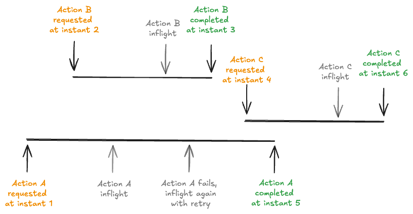 从本质上讲,时间线的功能类似于预写日志 (WAL),[4] 维护一系列不可变的操作。每个操作都记录为一个唯一的 Instant,一个由其操作类型(例如,commit、clean、compaction)标识的工作单元、一个标记作启动时间的时间戳及其生命周期状态。在 Hudi 中, instant是指操作、时间戳和状态(REQUESTED、INFLIGHT 或 COMPLETED)的组合,并用作时间轴上更改的原子单位。这些时间线条目是 Hudi 事务完整性的支柱,确保每个表更改都被原子记录并且时间线一致。每个作都经历一个状态生命周期: