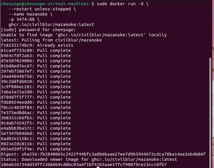 本例使用Ubuntu 22.04进行演示,使用Docker进行部署,如果没有安装Docker,可以查看这篇教程进行安装:《Docker安装教程——Linux、Windows、MacOS》