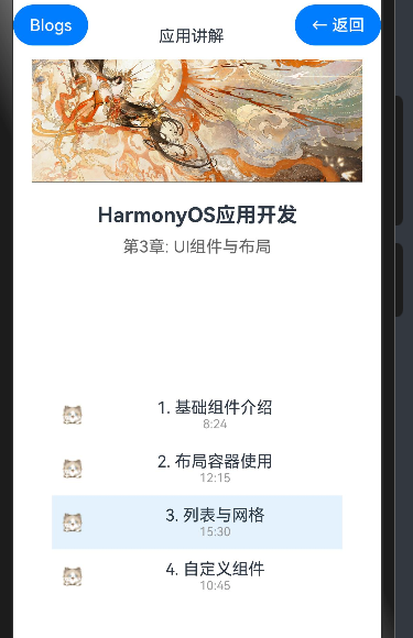 @State currentChapter: Lesson[] = [ /* ... */ ]这些状态变量的变化会触发界面的自动更新,实现响应式的用户界面。