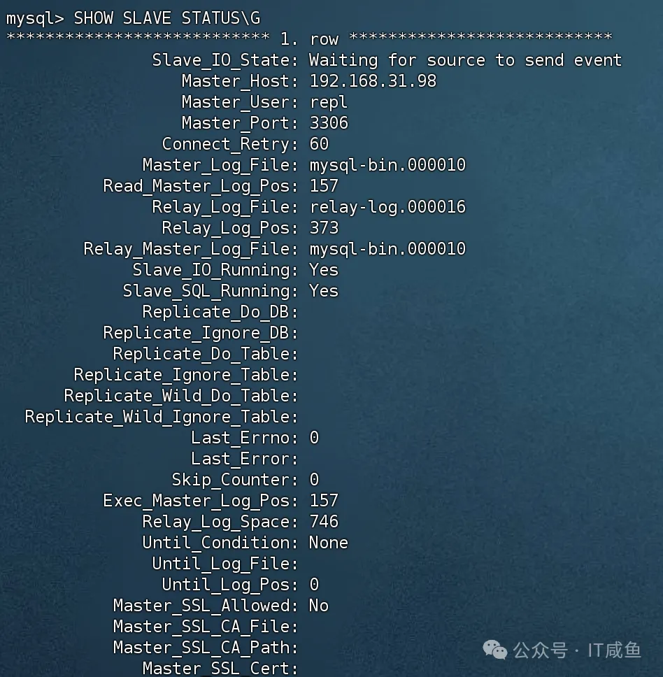 SHOW SLAVE STATUS示例截图: