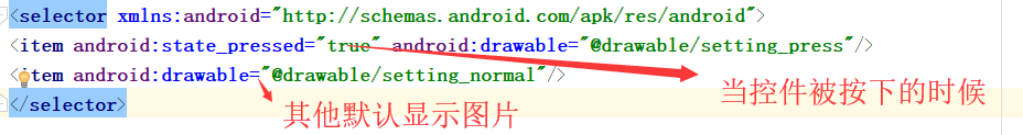 <item android:state_pressed="true" android:drawable="@drawable/setting_press"/>