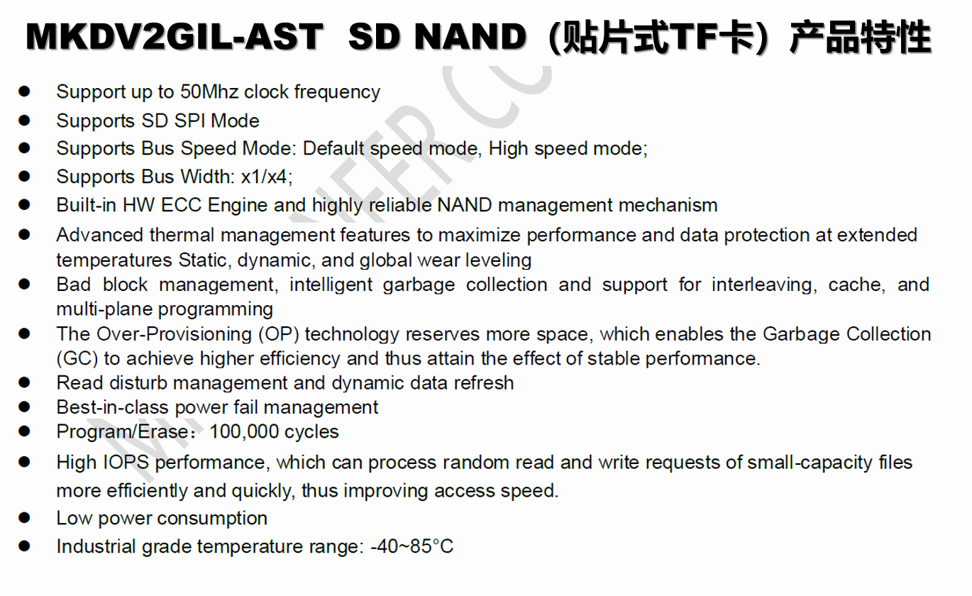 Nordic nRF52832 集成 64MHz 的 32 位 Arm®Cortex®M4 处理器,运算能力强。MKDV2GIL-AST 2Gb SLC SD NAND 存储芯片在低功耗、数据存储可靠上表现出色。二者结合,在无线传输心电数据时,nRF52832 能快速处理采集到的心电信号,MKDV2GIL-AST 可高效存储数据。例如在可穿戴心电监测设备中,能实现长时间稳定存储,且凭借 nRF52832 的蓝牙 5.3 多协议通信能力,方便与其他设备交互数据。