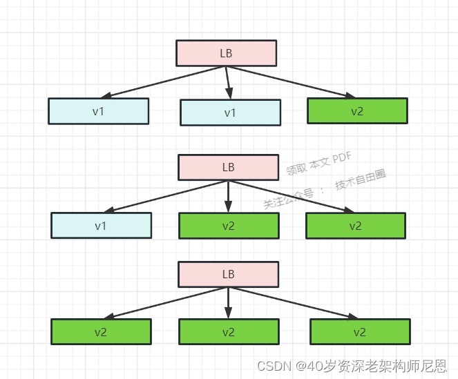 你可以阶段性的进行,而不用一次性从蓝色版本切换到绿色版本。