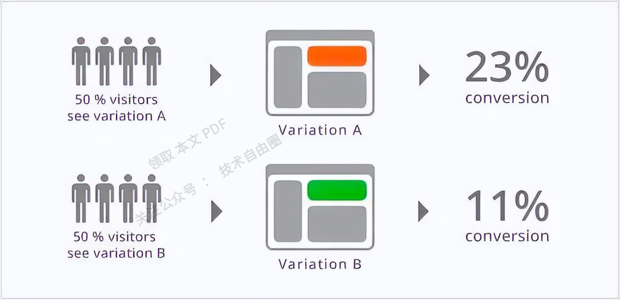 A/B测试时,线上同时运行多个版本的服务,这些服务通常会有一些体验上的差异,譬如说页面样式、颜色、操作流程不同。相关人员通过分析各个版本服务的实际效果,选出效果最好的版本。