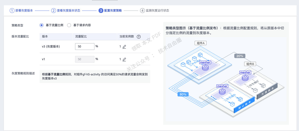 这个控制叫做“流量切分”,既可以用于金丝雀发布,也可以用于后面的A/B测试。