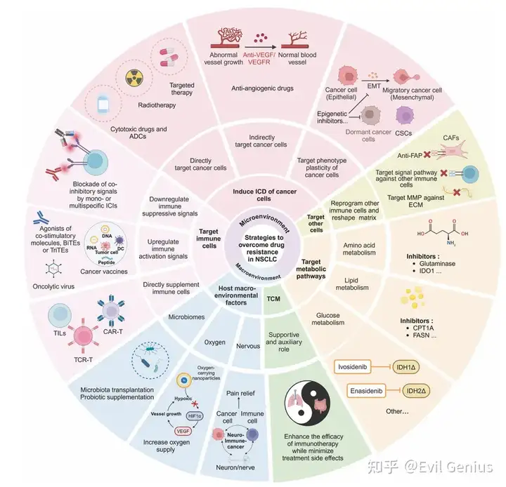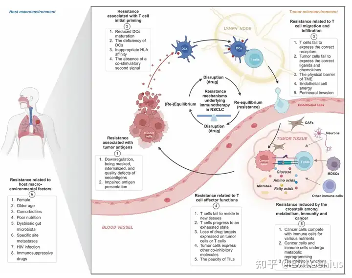 免疫细胞:为了进行性生长并向远处转移,癌细胞必须从TME中的免疫细胞中产生免疫逃逸,作为对抗癌细胞的主要杀手,细胞毒性CD8+ T淋巴细胞的存在与NSCLC患者的良好预后相关。