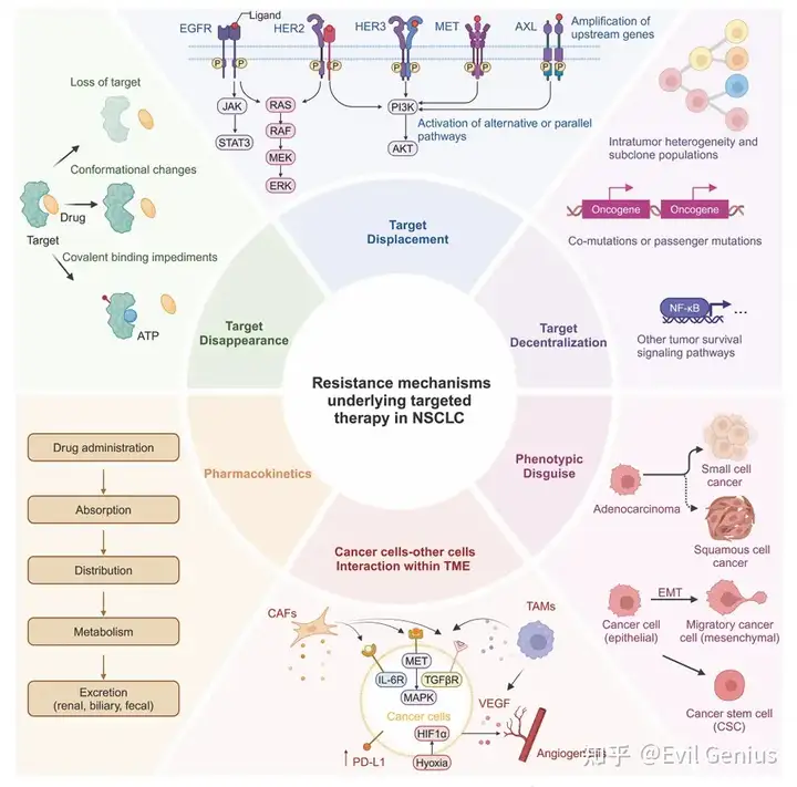 轻度或从不吸烟者和年轻患者更可能有EGFR突变和融合,如ROS-1,ALK和RET,而重度吸烟者更可能有KRAS,MAP2K1和TP53突变。此外,疾病进展或药物应激可导致各种遗传变异的丢失或获得。