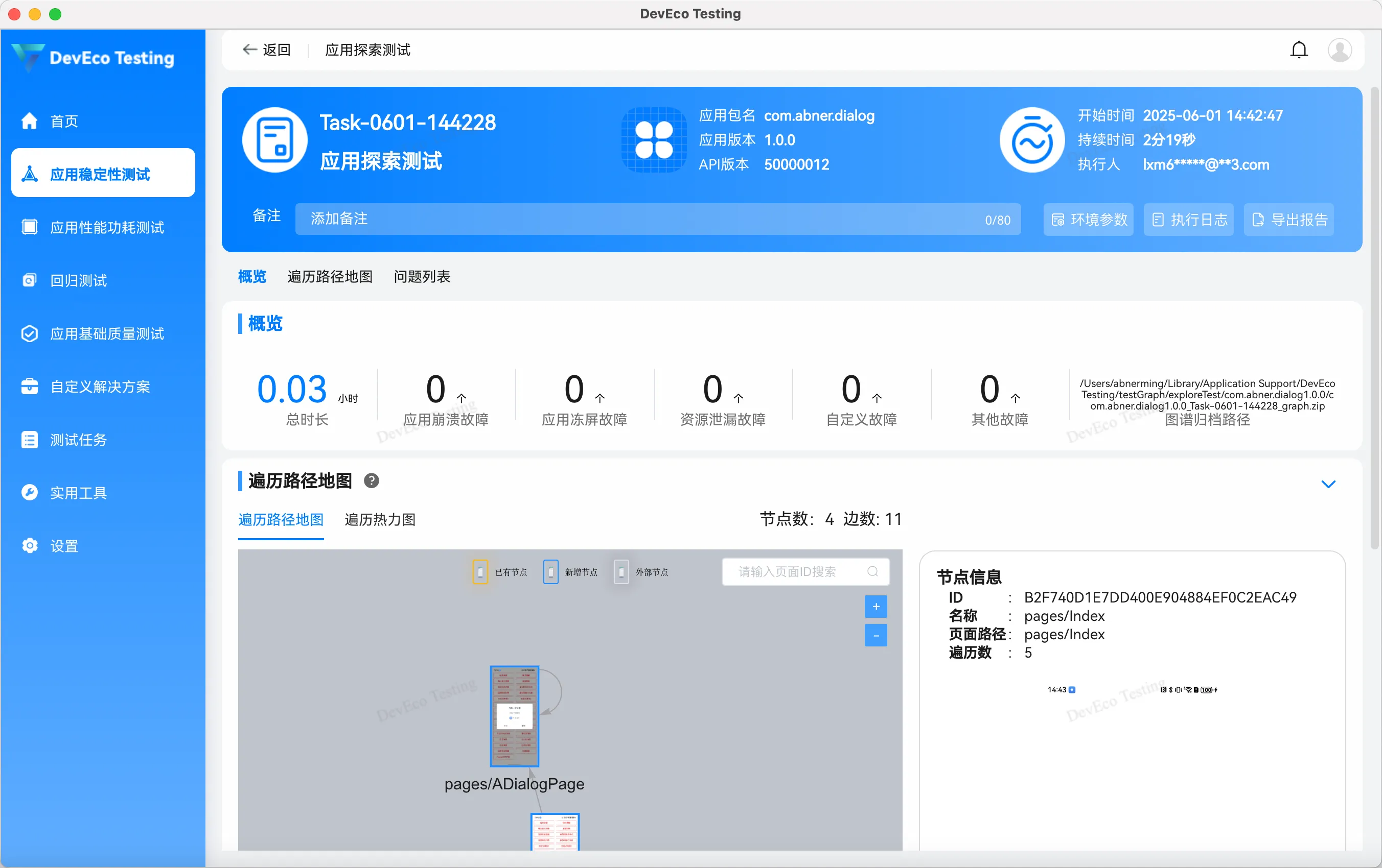 稳定性测试功能体验过后,只能用惊叹两个字形容,因为它使用足够简单,功能足够智能,分析也足够全面,它可以为我们提供面向应用的智能遍历测试手段和稳定性测试模型管理能力;除此之外,我们也可以根据个人需要管理需要的模型,以此帮助我们来识别,那些影响到应用,影响到系统稳定性的异常问题,最终达到提升开发软件的质量的目的。