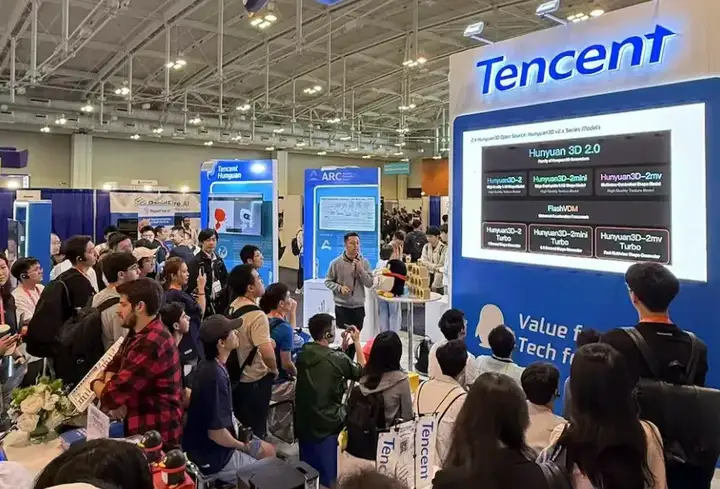 在会议现场,产业界的存在感空前强烈。Meta、NVIDIA、谷歌、苹果等科技巨头展台林立,而腾讯的“长鹅”气球和字节跳动的展区前同样人潮涌动