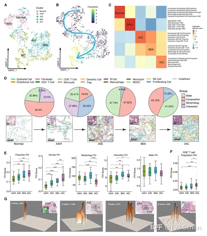 评估不同阶段LUAD前体的多细胞空间组织的ITH。