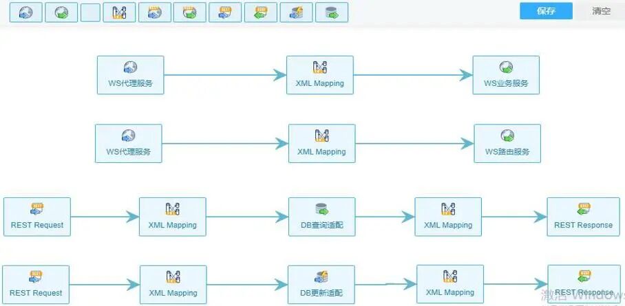 单个服务的可视化设计可以理解为实现单个服务的可视化服务设计,其中包括了服务适配,路由,数据映射,协议转换等常见的编排节点和组件。