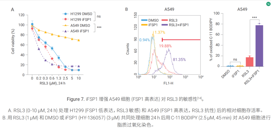 案例二:FSP1 抑制剂增强 A549 细胞对铁死亡诱导剂的敏感性